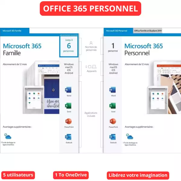 Accueil / boutique 2da / Logiciels / Microsoft 365 Personnel|2020|1 appareil|1 an|PC/MAC/Chromebook|Box