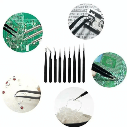 Composé de 9 pincettes de précision avec différentes formes de pointes (pointue, droite, courbée, plate, triangle), le RH Ensemble de pincettes antistatiques ESD en acier inoxydable à pointe en caoutchouc 9 pièces pour réparation ordinateur offre une grande polyvalence pour les travaux BGA, micro-soudures et interventions délicates.