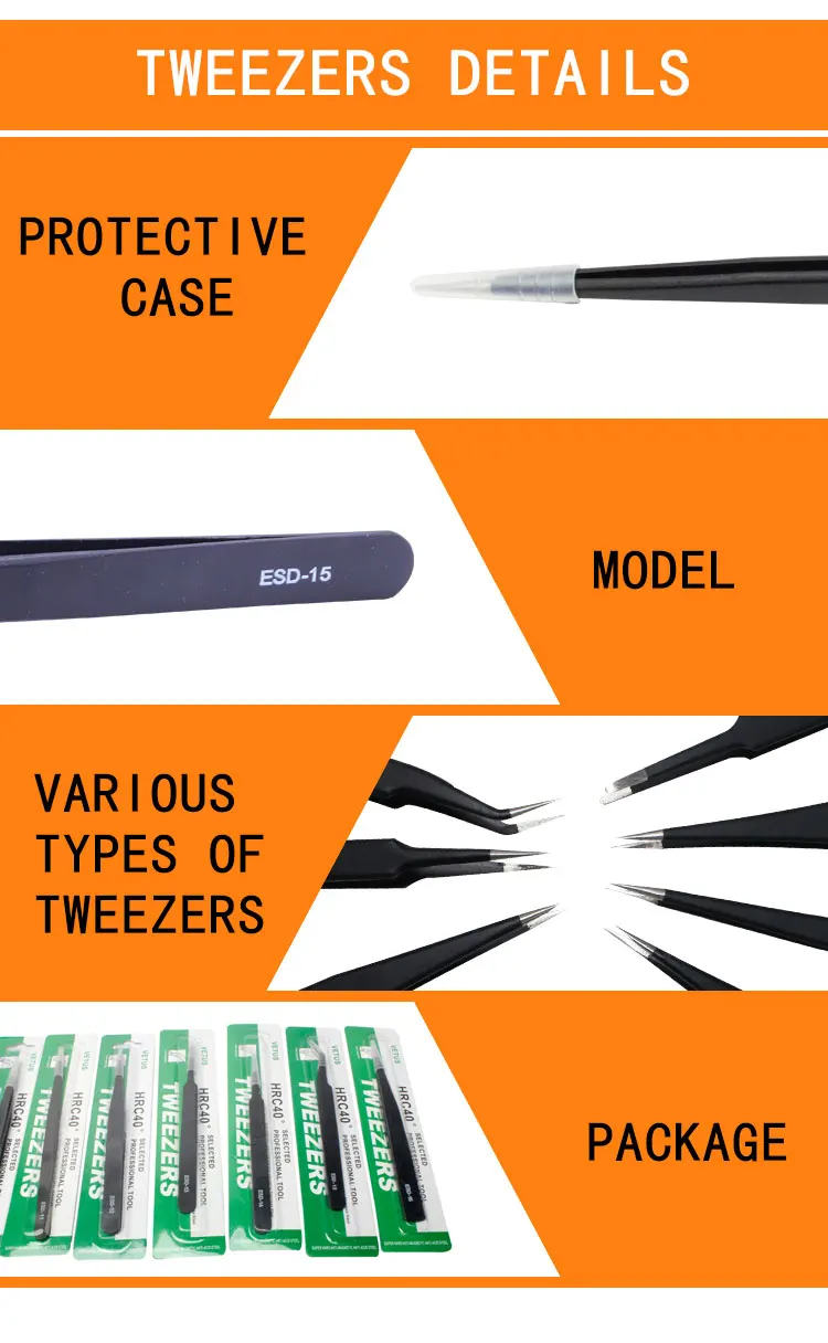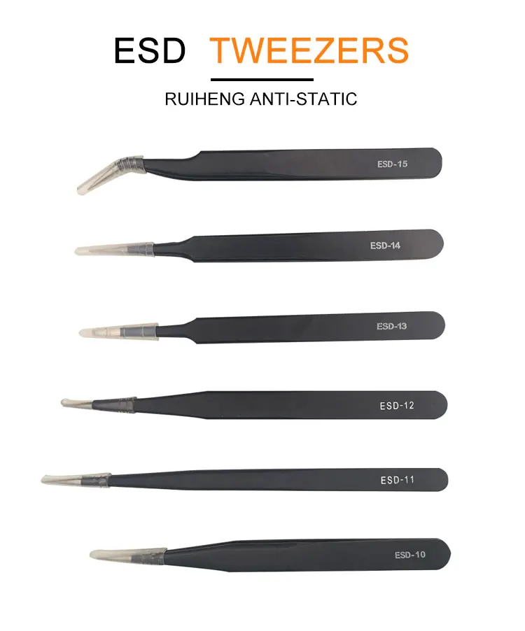Nom du produit : Ruiheng 9PCS Kit pince à épiler en acier inoxydable ESD noir antistatique pour réparation électronique