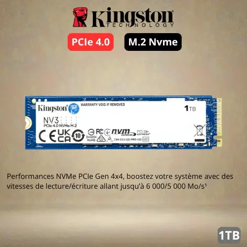 Optez pour le SSD NVMe Kingston NV3 1 To PCIe 4.0 et profitez d’un stockage rapide, fiable et performant pour booster votre ordinateur en toute sérénité.